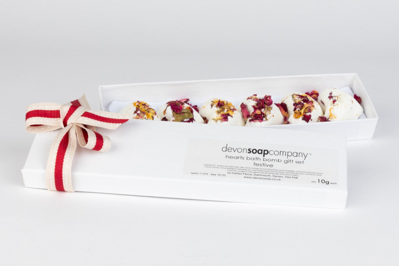Set of 6 mini bath bomb hearts, which may contain bioglitter, depending on how sparkly we were feeling when making them!